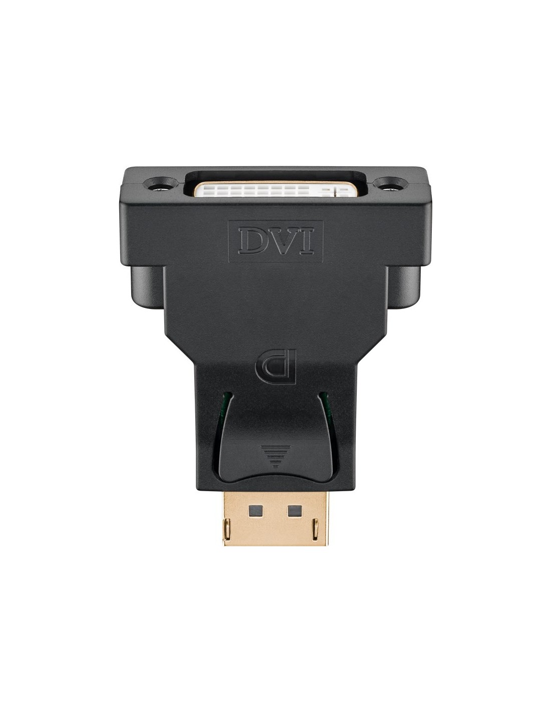 - Convierte un conector DisplayPort en un conector DVI-D para ayudar a conectar un cable DVI