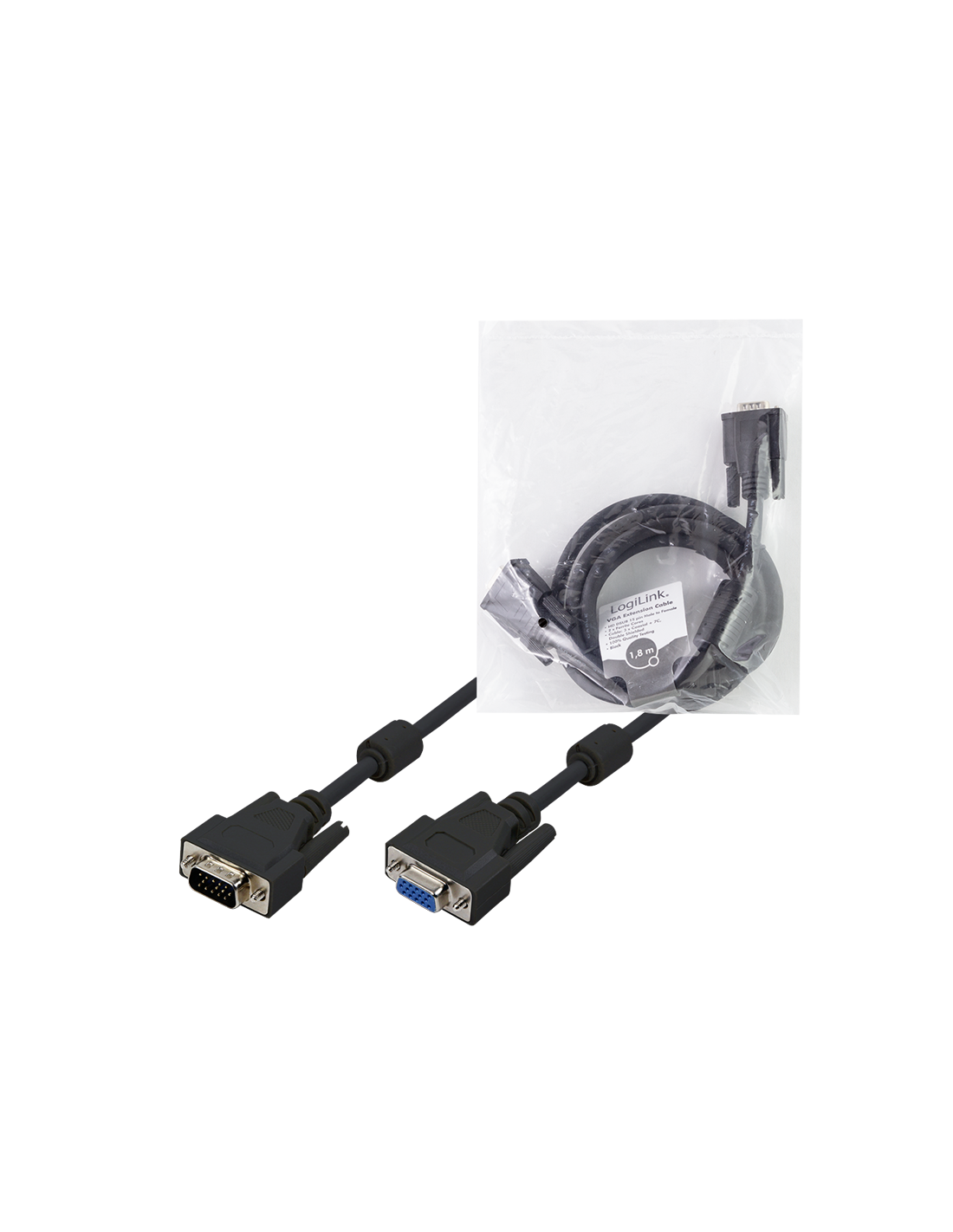 Cable prolongador con 1 conector D-Sub (alta densidad) de 15 polos macho y 1 conector D-Sub (alta densidad) de 15 polos hembra.