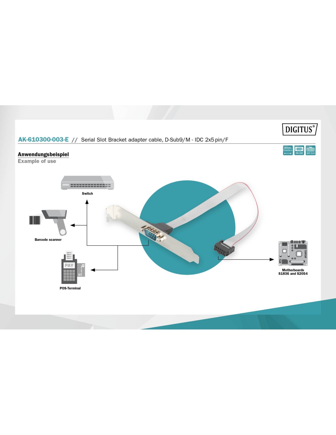 14 días de devoluciónCable de soporte de ranura serial, D-Sub9 - IDC 2x5pin M/F, 0.25m, serial, DTK, be