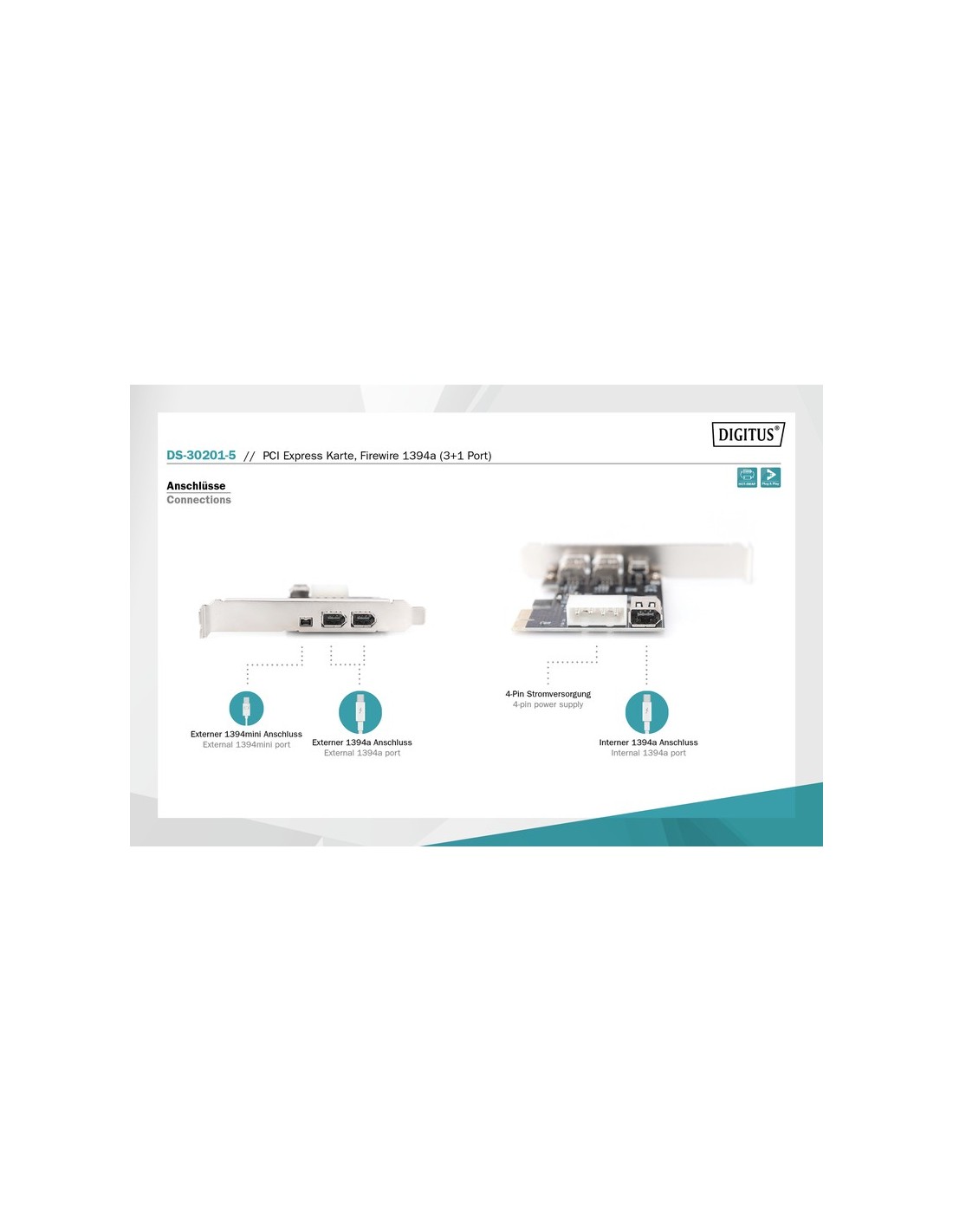 14 días de devoluciónTarjeta de interfaz IEEE 1394a, PCIexpress, 4 puertos 1 puerto ext. 1394mini, 2 puertos ext./1 int. 1394a
