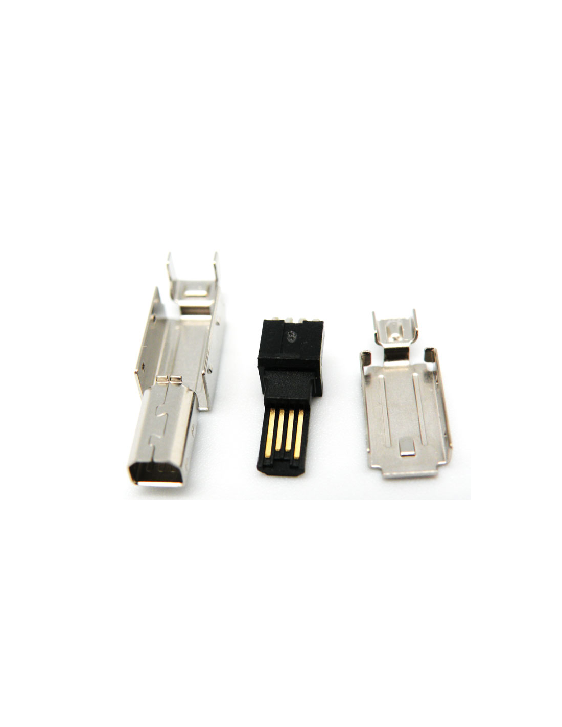 - Conector Mini USB A 4 pines M en tres partes para montar