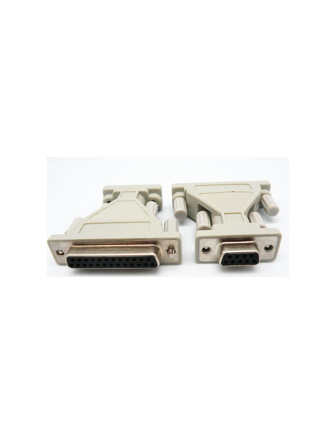Adaptador serie con conector DB9 Hembra en un lado y conector DB25 Hembra en el otro. Modelo montado en carcasa de plástico.