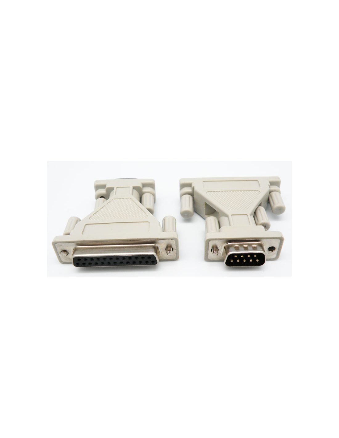 Adaptador 2 conectores D-Sub, 1 de 9 polos macho y 1 de 25 polos hembra.