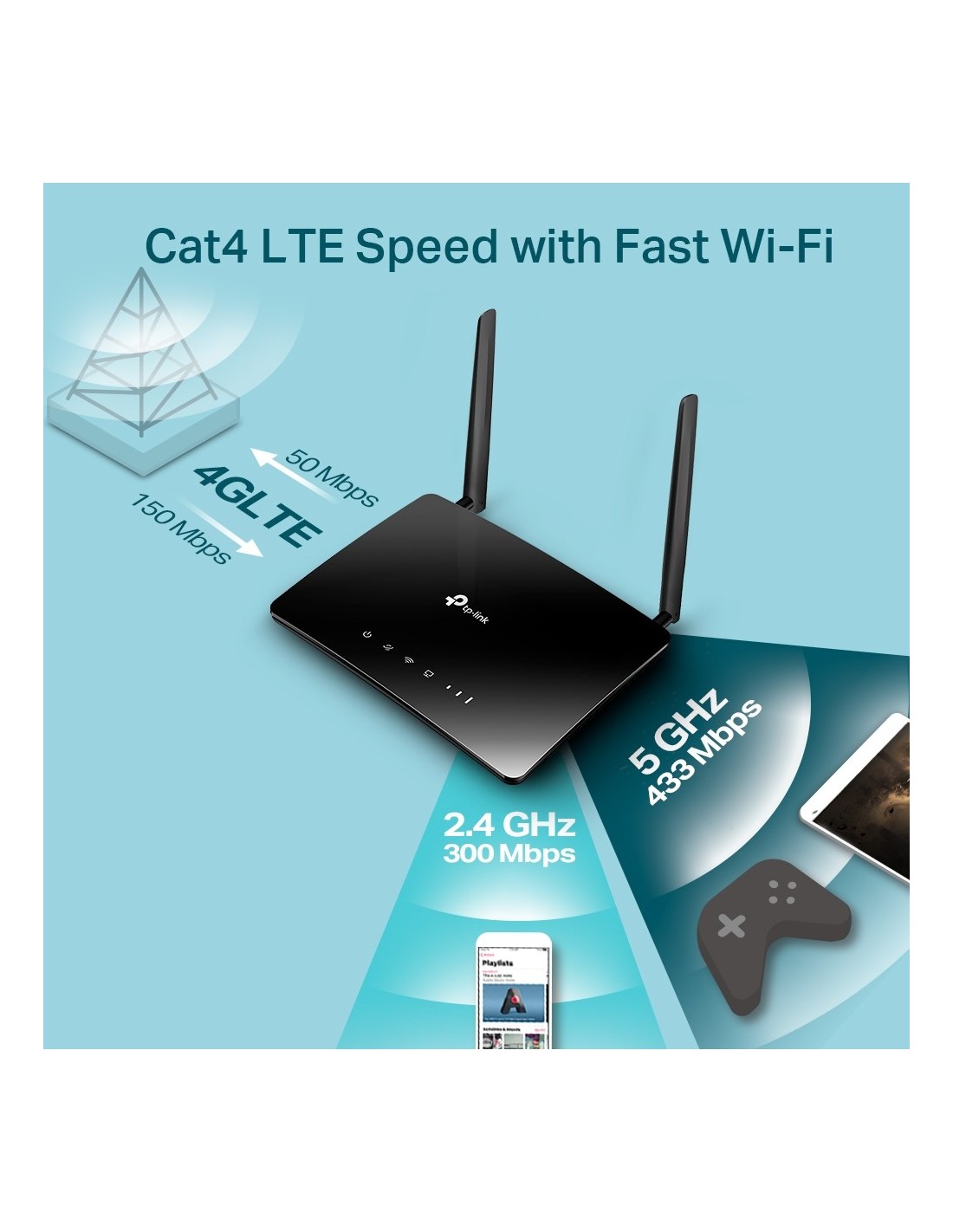 - Crea redes Wi-Fi simultáneas de doble banda, con velocidades máximas de hasta 300 Mbps en la banda de 2.4 GHz y 433 Mbps en la banda de 5 GHz
