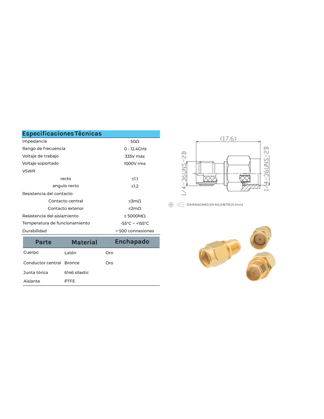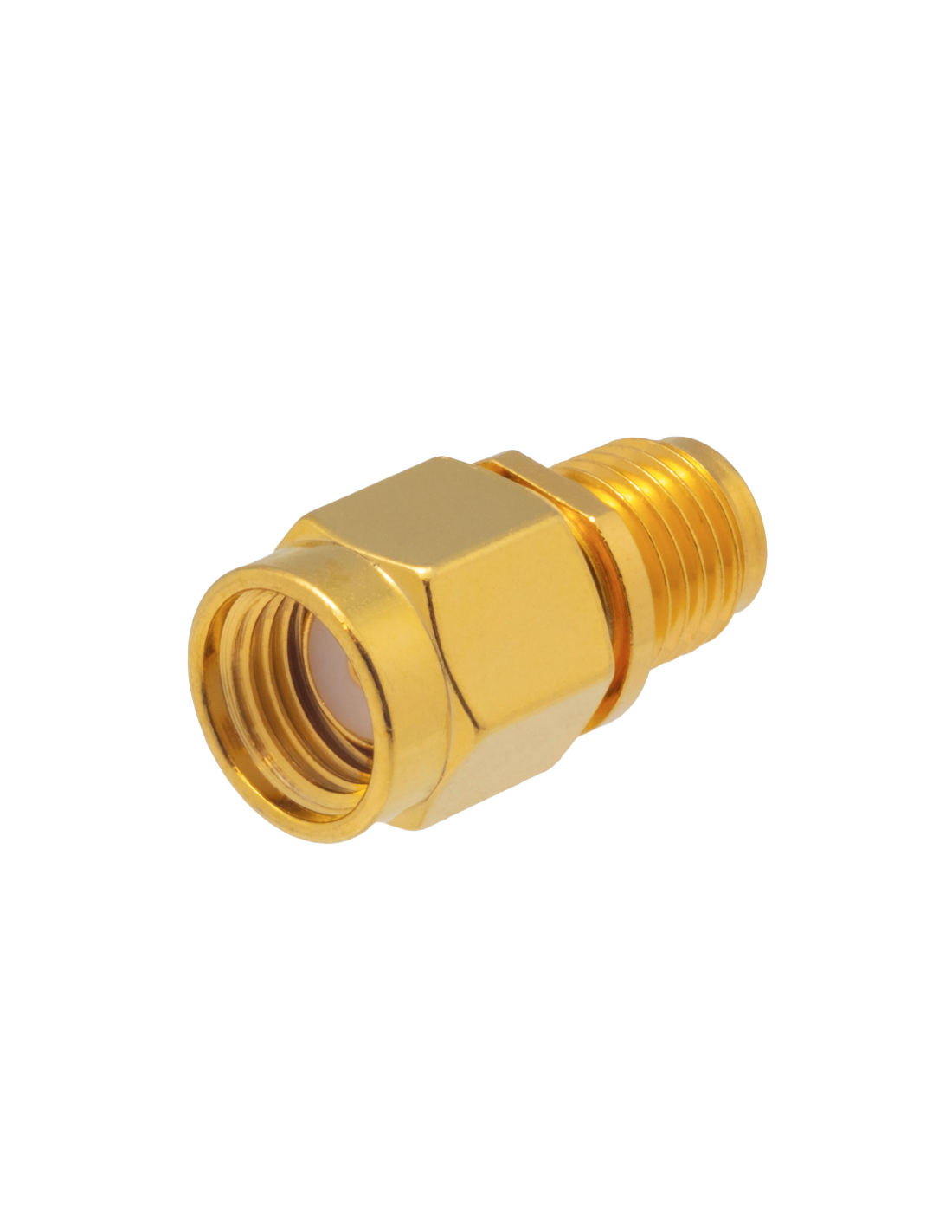 Adaptador basado en conectores coaxiales SMA, utilizados en los puntos de acceso y adaptadores wireless 802.11 para conexión con las antenas y su cableado. Adaptador rSMA-Macho en un extremo y rSMA-Hembra en el otro.