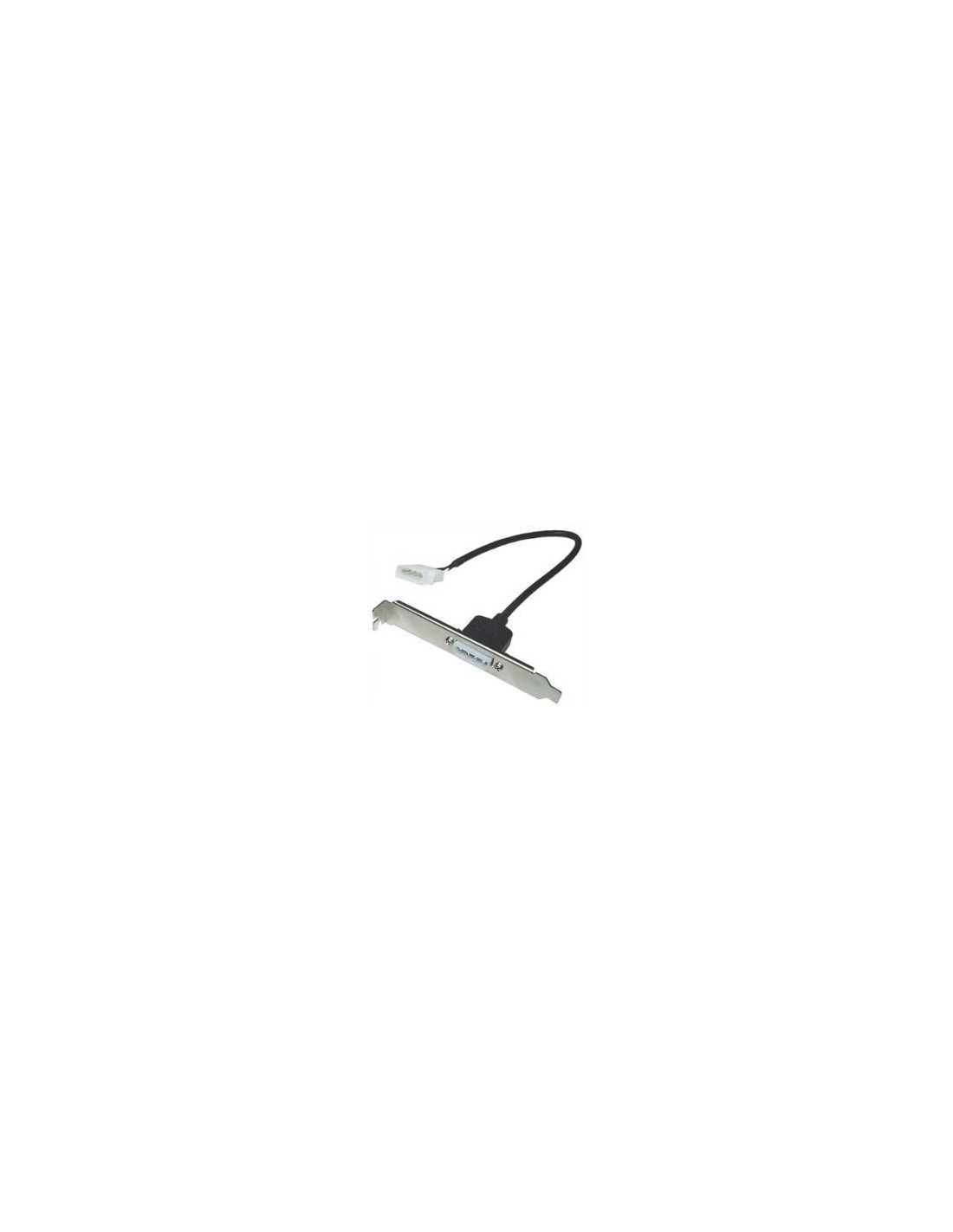 - Bracket metálico que se instala en un slot de expansión del chasis del PC y externaliza un conector MOLEX 5.25" de 4-pin interno.