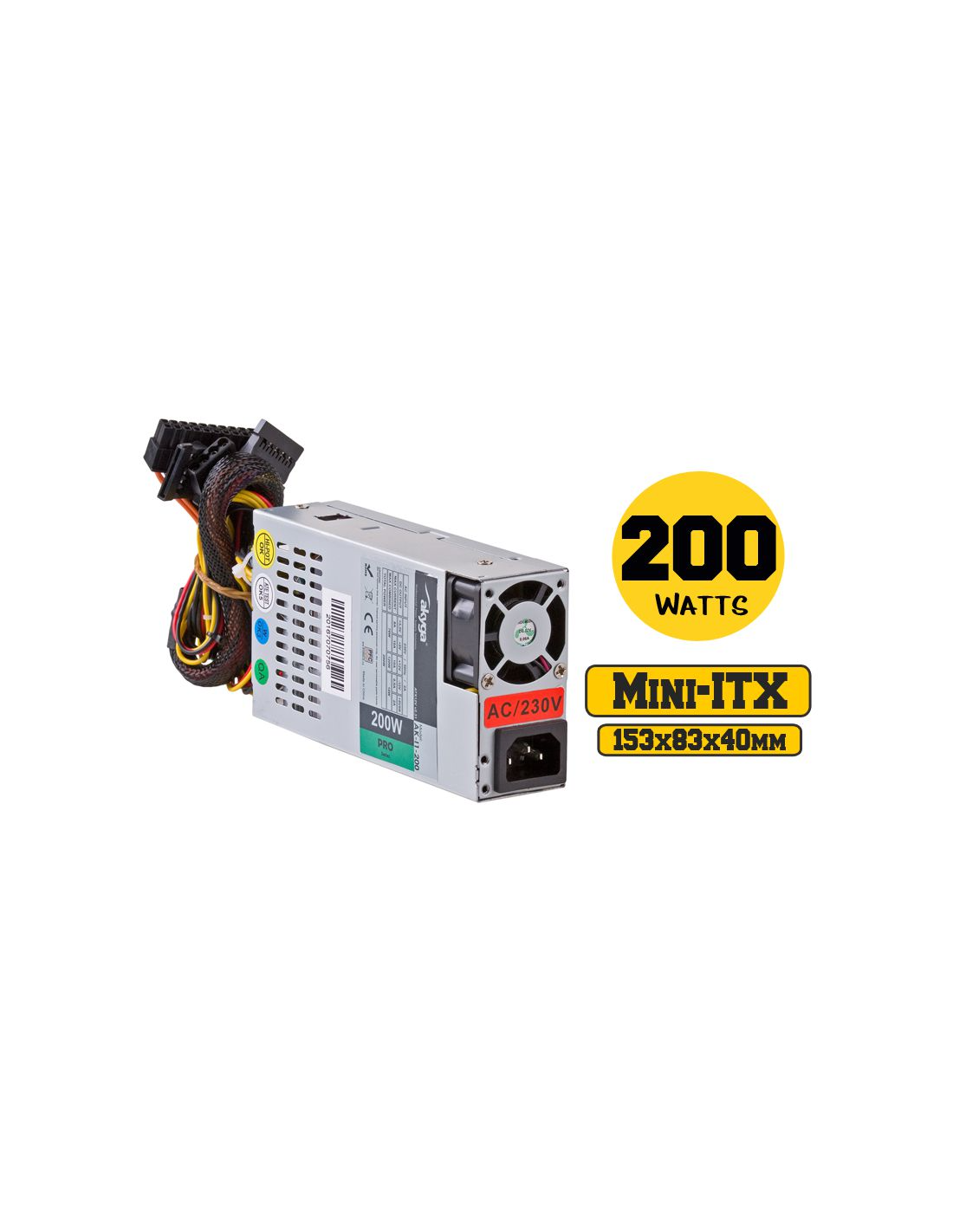 Fuente de alimentación mini-ITX con 200W de capacidad.