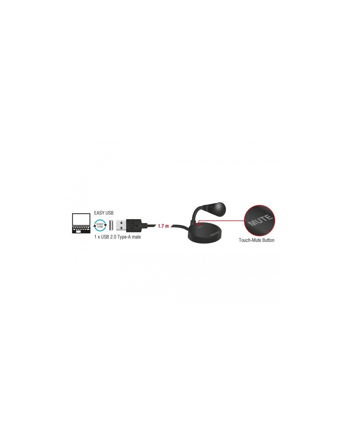 14 días de devoluciónMicrófono USB de Delock se puede utilizar para transmisiones vocales y de voz. La base de goma proporciona un soporte antideslizante y el cuello de cisne permite que el micrófono se doble en la dirección ideal.