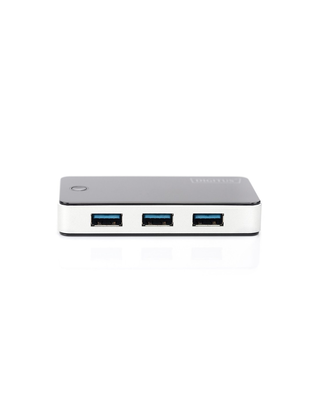 El concentrador USB 3.0 de 4 puertos DIGITUS le ofrece la posibilidad de poner en funcionamiento hasta 4 dispositivos USB al mismo tiempo en el PC o Mac. Conecte sus dispositivos favoritos y benefíciese de la rapidísima velocidad USB 3.0 (hasta 10 veces más rápido que el USB 2.0). Este producto destaca por su diseño claro y elegante con el acabado en negro lacado de la cara inferior y superior, así como por su borde de color aluminio.