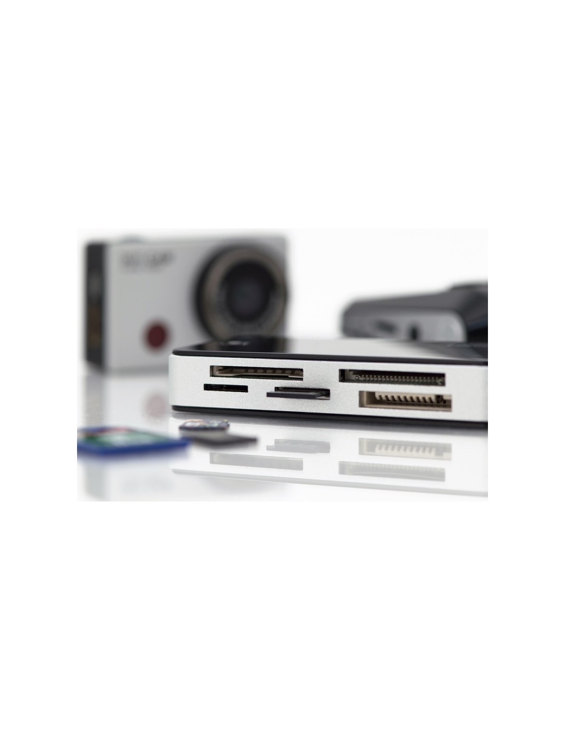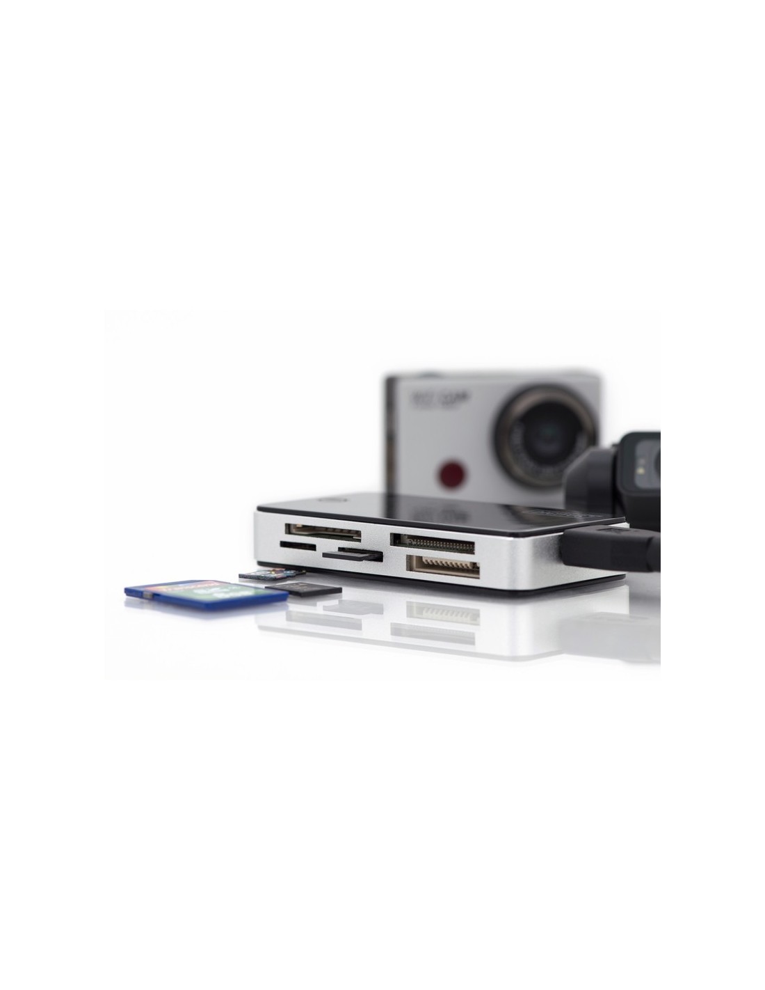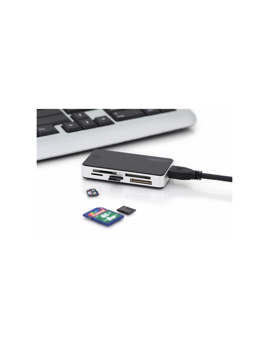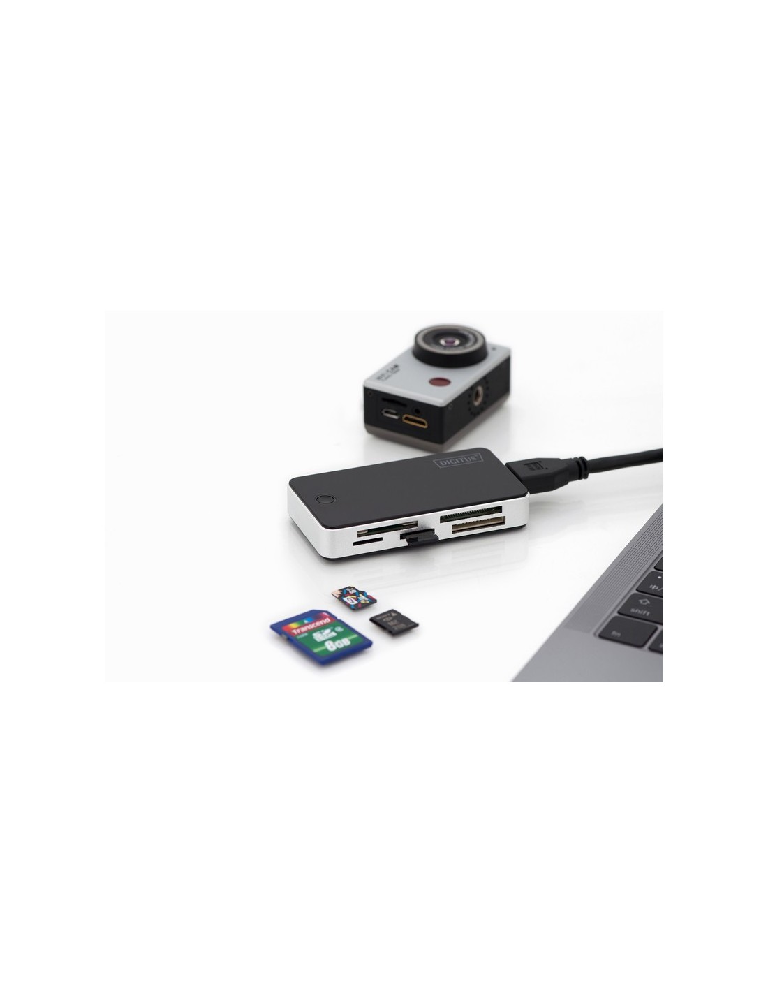 El lector de tarjetas "todo en uno" DIGITUS USB 3.0 le permite transferir sus datos a PC o Mac de la manera más rápida posible. Tiene la posibilidad de usar todas las tarjetas de memoria habituales.