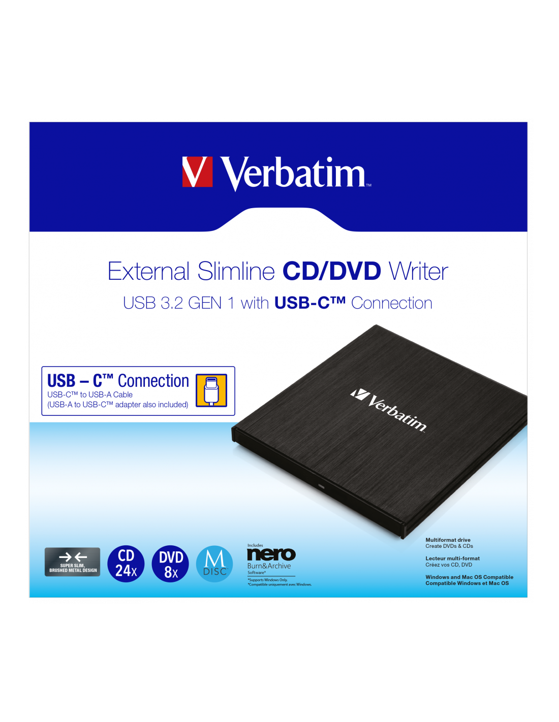 Regrabadora externa USB 3.2/USB-C DVD/CD VERBATIM