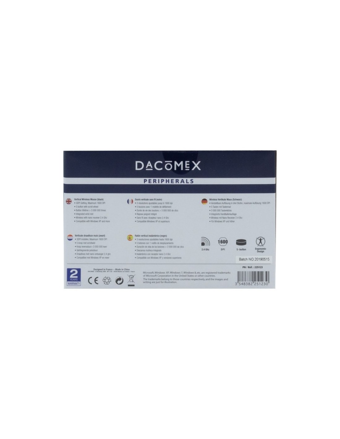 La forma del ratón vertical proporciona un óptimo confort de uso. Los 5 botones son de fácil acceso para que sus dedos están perfectamente colocados en una postura natural en todo momento. Los bordes de la base evitan las fricciones de su dedo meñique en el escritorio.