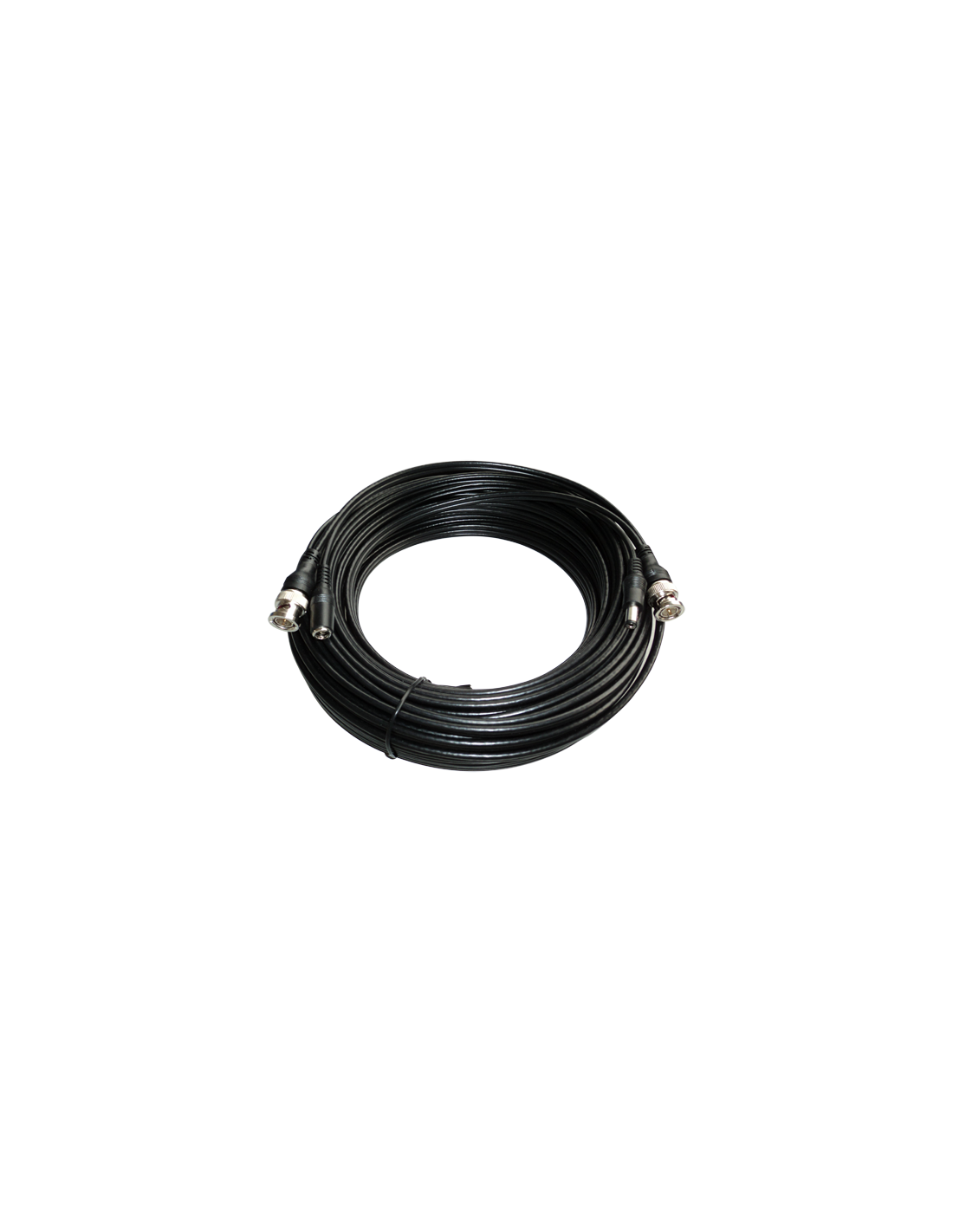 Cable coaxial alargador para señales de vídeo y alimentación. Cable combinado RG59 + 2x0.5. Bajas pérdidas. Longitud fija de 10 metros, con conector macho BNC de vídeo en los extremos.