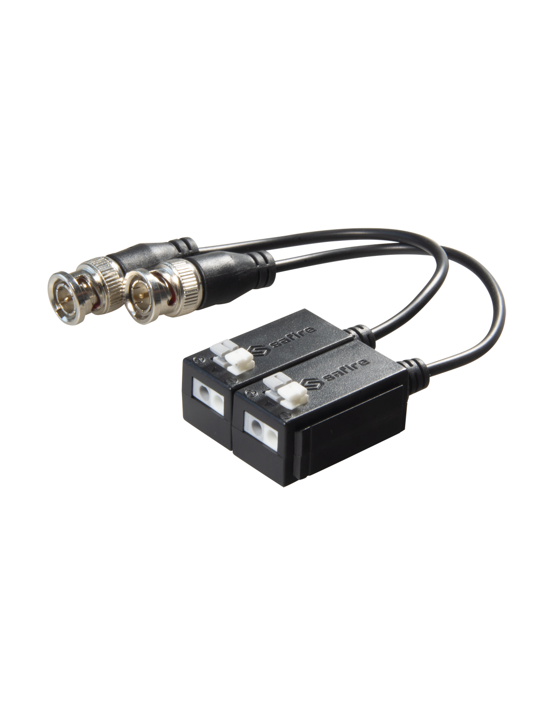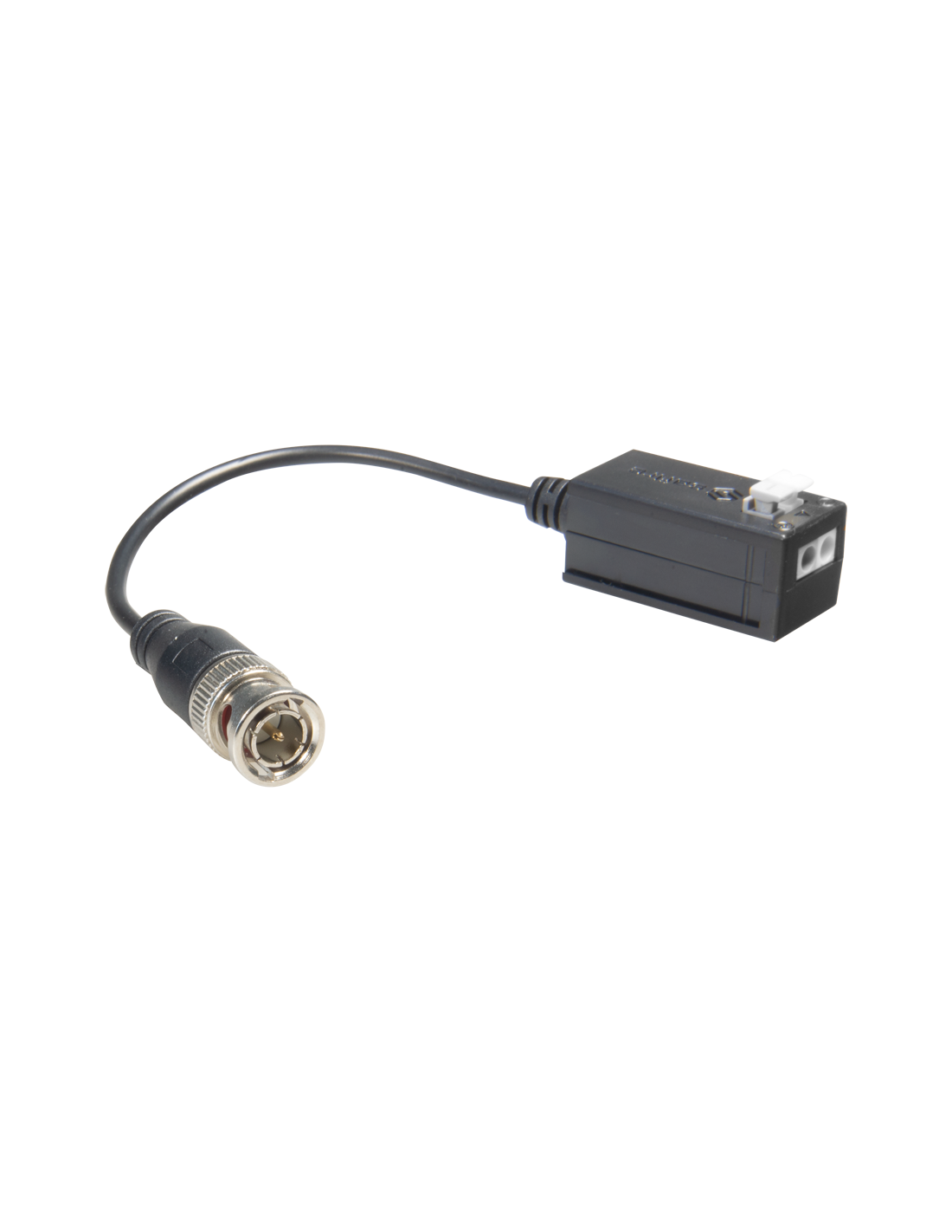 Permite enviar la señal (vídeo) de 1 cámara por par trenzado. Dispone de conector BNC macho y terminal de inserción de cable por tornillos, conector de dos pines.