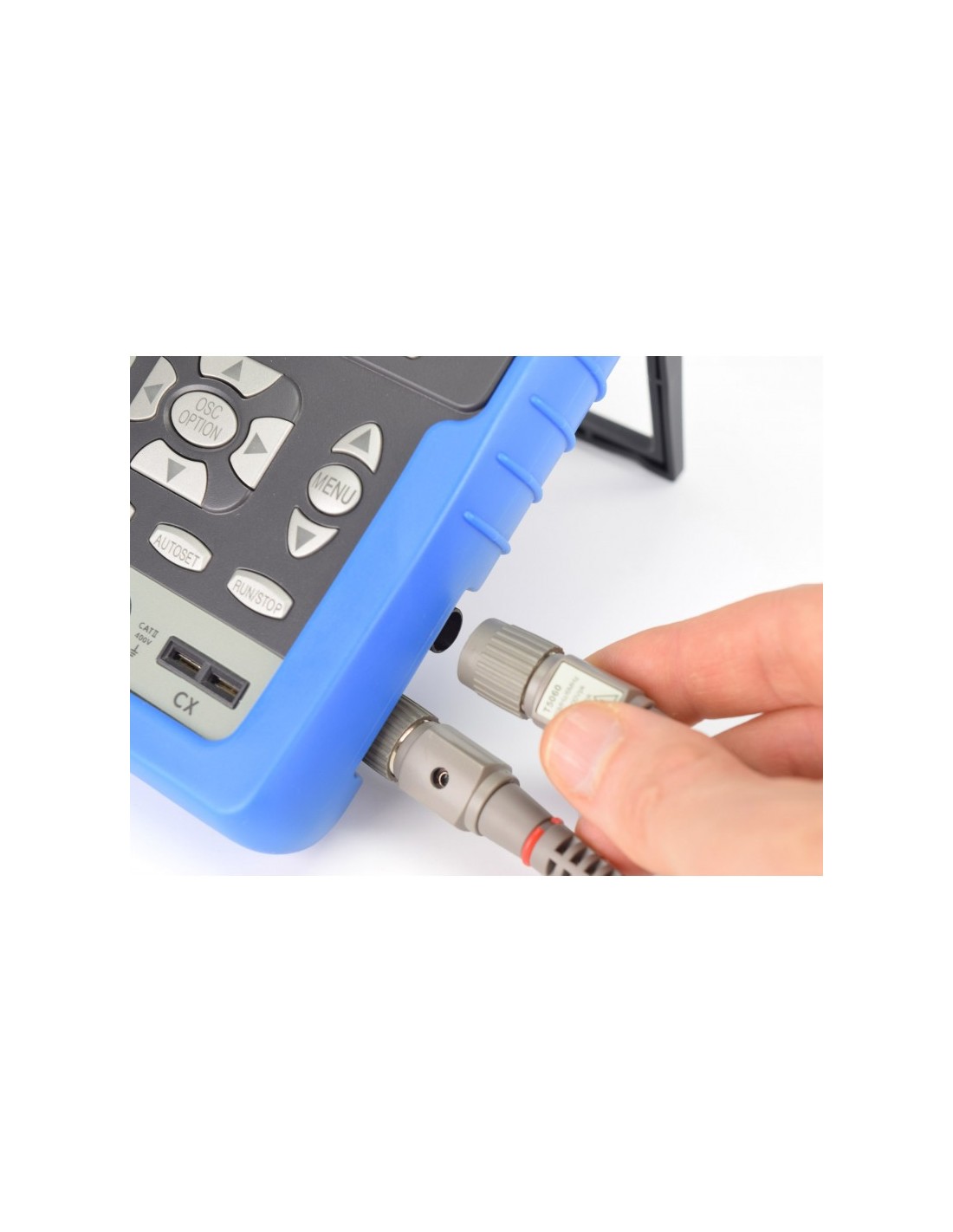 El equipo puede funcionar de forma autónoma con su batería interna o también conectado a la red por medio del adaptador AC incluido en el paquete. Con el puerto USB se puede conectar el equipo al PC y capturar los datos del oscilopio.