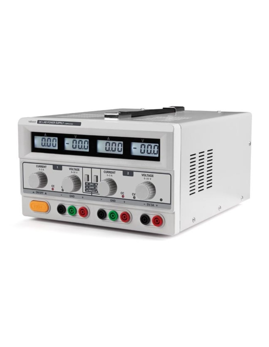 14 días de devoluciónFuente de laboratorio, ajustable, 2 x 0-30 VCC/0-3 A, + 5 VCC fijo/3 A, limitación de corriente, protección contra cortocircuitos, 4 lcd, pantallas grises