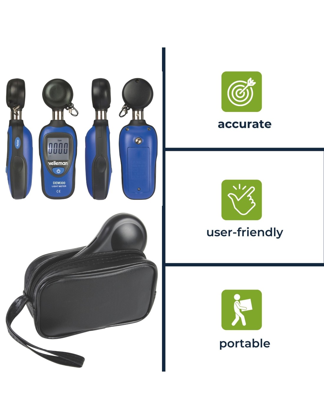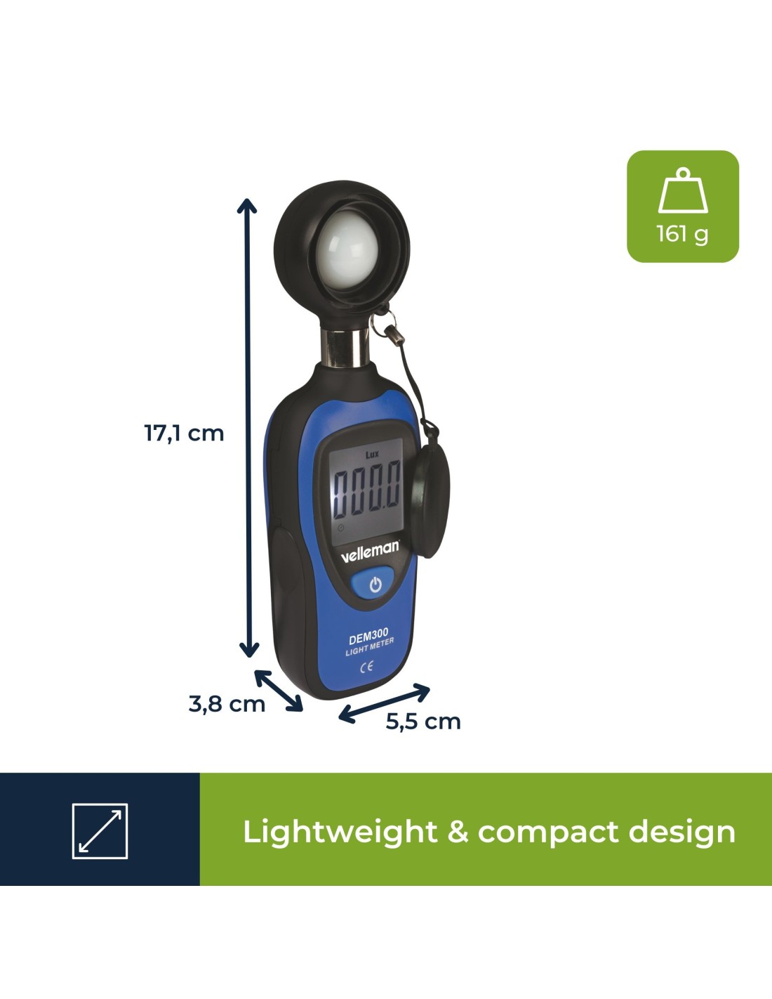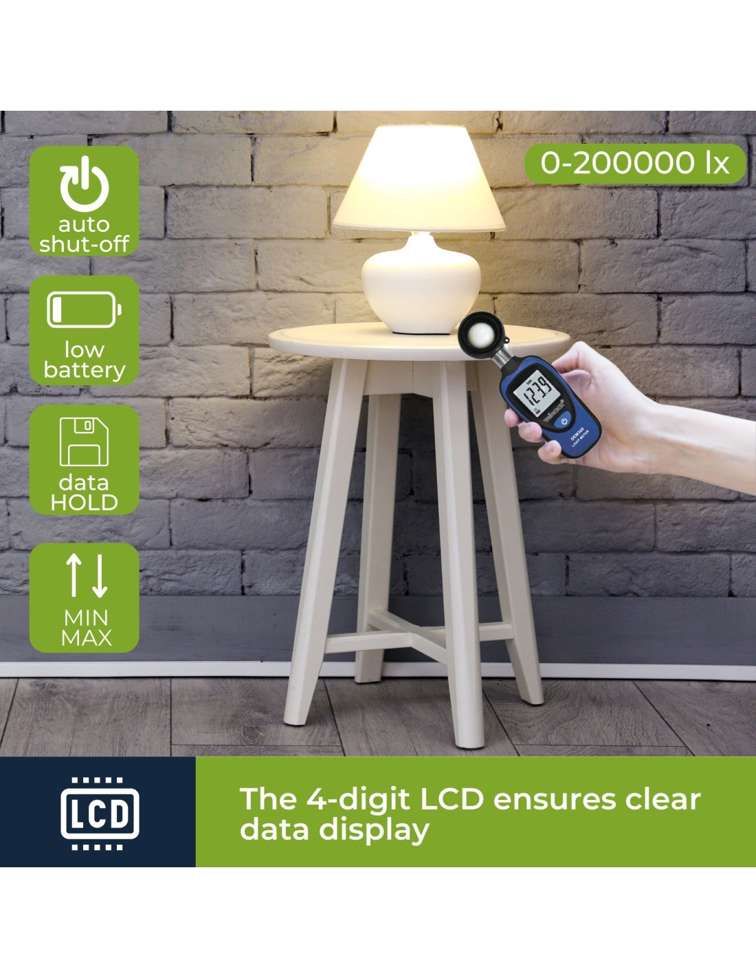 Medidor de luz digital, función máxima/min, 0-200,000 lux, pantalla LCD, bolsillo