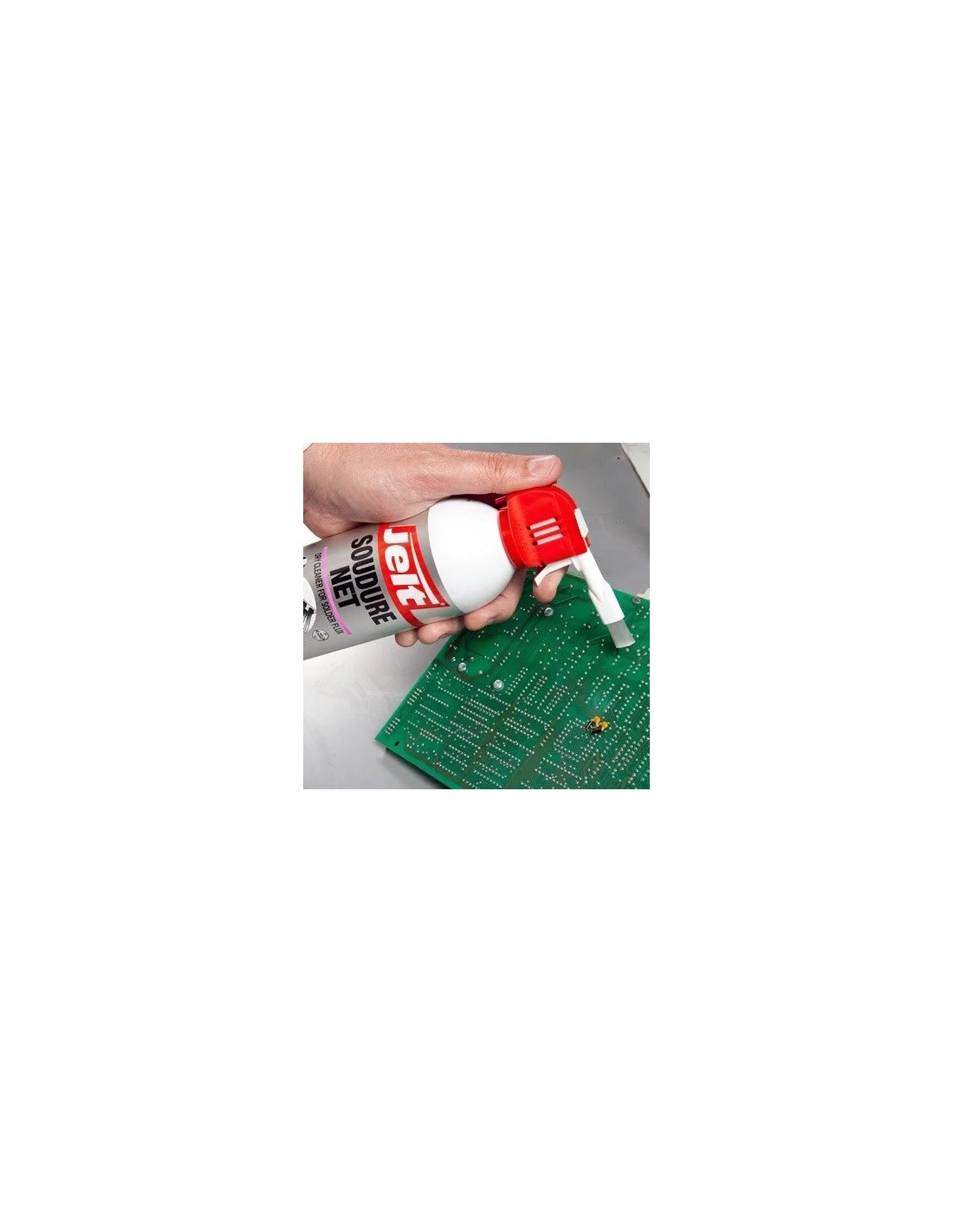 El Jelt SOUDURE NET FG es un eliminador de fundente de soldadura que se ha desarrollado para una limpieza Rapid y eliminación total de flujo graso. El uso del cepillo traerá una acción mecánica a la acción química y limpiará el circuito eficientemente.