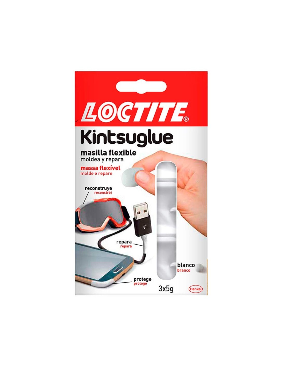 - Es muy flexible y con una fina capa de esta masilla, se consigue reparar objetos como los cargadores de los móviles o los auriculares.