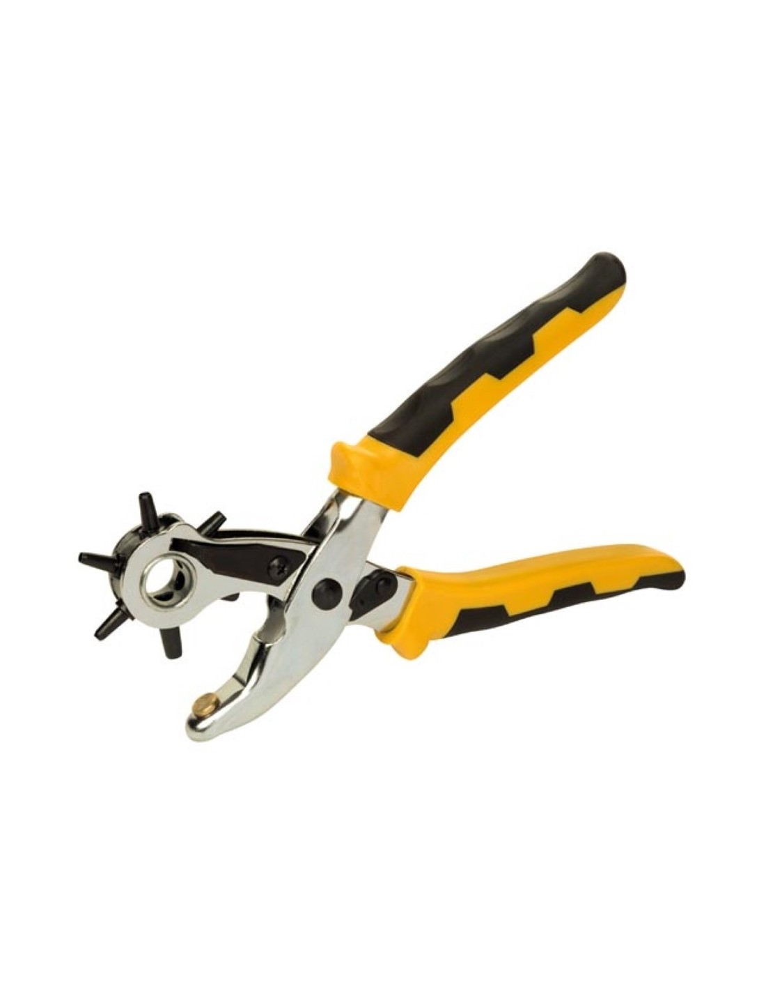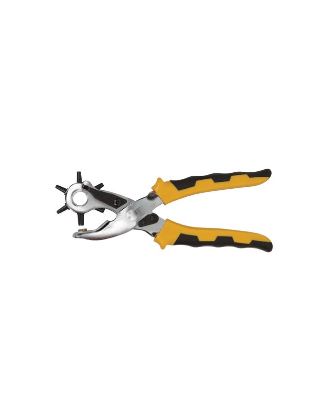 Descubra nuestros avanzados Alicates de Punch de revólver de 210 mm, el compañero perfecto para todos sus proyectos de trabajo de cuero y más. Esta herramienta única viene con un total de 6 golpes intercambiables, lo que le permite perforar agujeros sin esfuerzo en cuero y otros materiales con una precisión incomparable. Ya sea que sea un profesional o un dihisorante entusiasta, esta herramienta superará sus expectativas. Crafted a partir de acero cromado (CRV) de alta calidad, esta herramienta garantiza la durabilidad y el rendimiento duradero. El llamativo color amarillo con acentos negros no solo lo hace funcional sino también elegante. Gracias a su diseño ergonómico y su conveniente longitud de 210 mm, los alicates encajan cómodamente en su mano, incluso durante el uso extendido. Haga que sus proyectos de trabajo de cuero sean más eficientes y precisos que nunca con nuestros alicates de revólver.