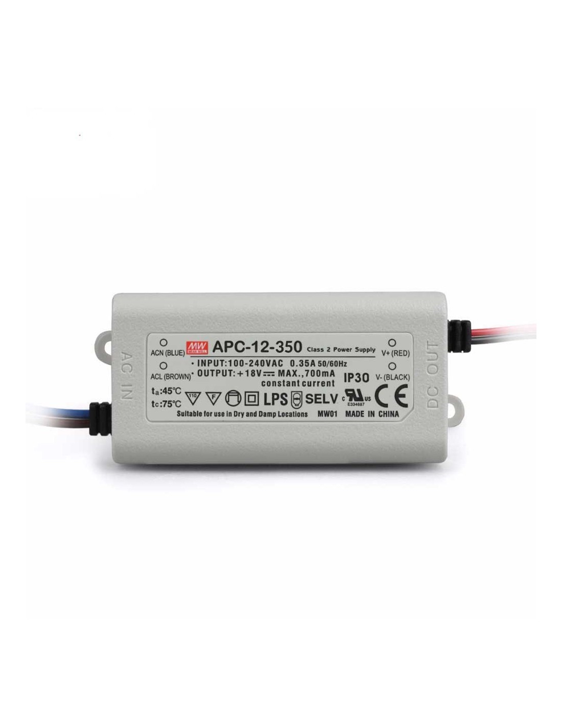Las series APC y APC-E son LED drivers diseñados para trabajar directamente con LEDs (placas de LED o COBs), no con tiras LED. Deben ser equipos que se alimenten en corriente constante. Con carcasa de plástico pensados para aplicaciones de iluminación LED y señalización móvil.