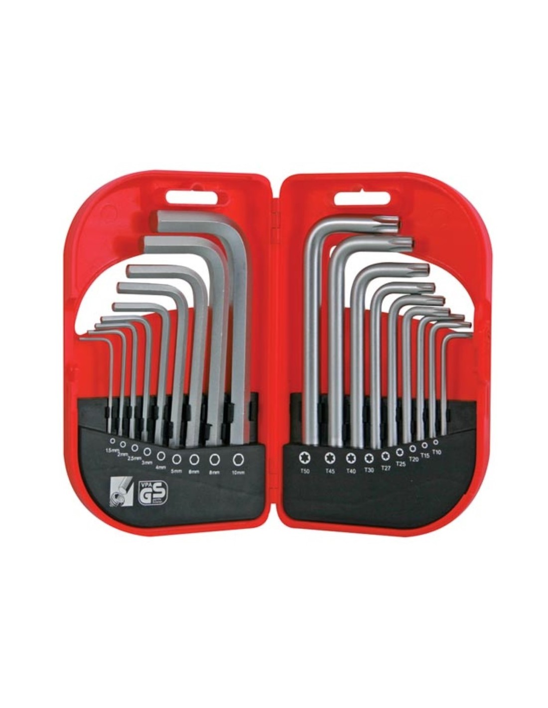 - llave estrella (9 uds.): T10, T15, T20, T25, T27, T30, T40, T45, T50