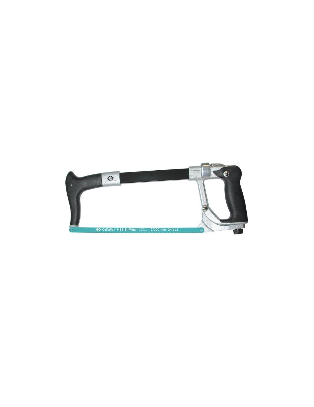 Sierra para metal de alta resistencia y calidad premium, con empuñaduras de goma para mayor comodidad y control.