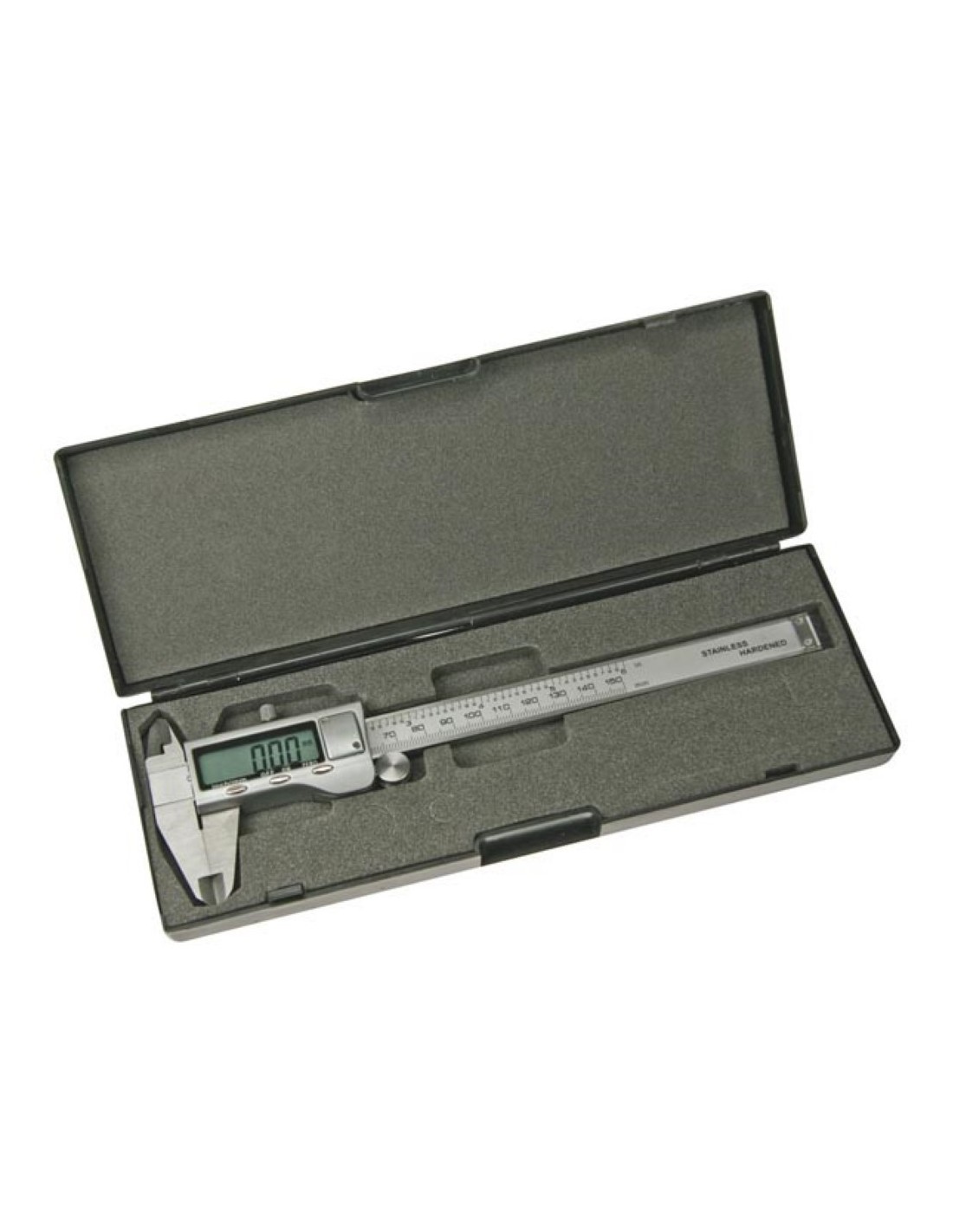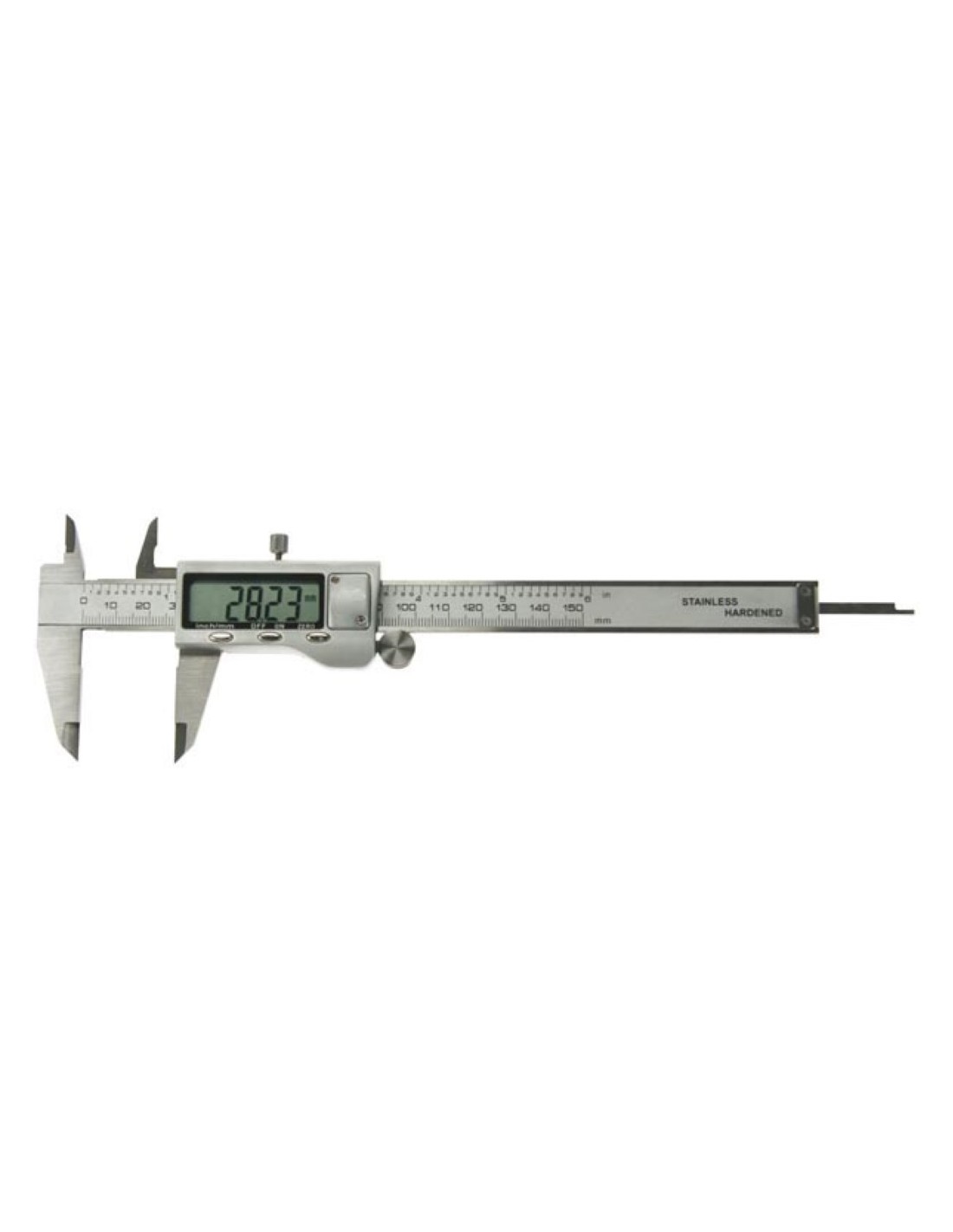 Nuestro calibrador digital, con un rango de medición de 150 mm (6 pulgadas) y una resolución de 0.01 mm (0.0005 pulgadas), es la herramienta ideal para mediciones precisas. La pantalla LCD grande con cinco dígitos muestra mediciones en milímetros y pulgadas para la versatilidad definitiva. Hecho de acero inoxidable de alta calidad, este calibrador es adecuado para mediciones interiores y exteriores. Cuenta con una función de visualización y una pantalla LCD fácil de leer. Las especificaciones técnicas incluyen el posicionamiento absoluto, un rango de medición de 0-150 mm, y viene con dos baterías de óxido de plata (SR44) con un voltaje de 3 V. Además, el calibrador viene con características prácticas, que incluyen un mm/ Interruptor de pulgada y un caso protector. El color gris con acentos de metal no solo le da un aspecto profesional, sino que también lo convierte en un compañero confiable tanto para profesionales como para entusiastas de bricolaje entusiasta, buscando durabilidad, precisión y facilidad de uso para todas sus necesidades de medición.