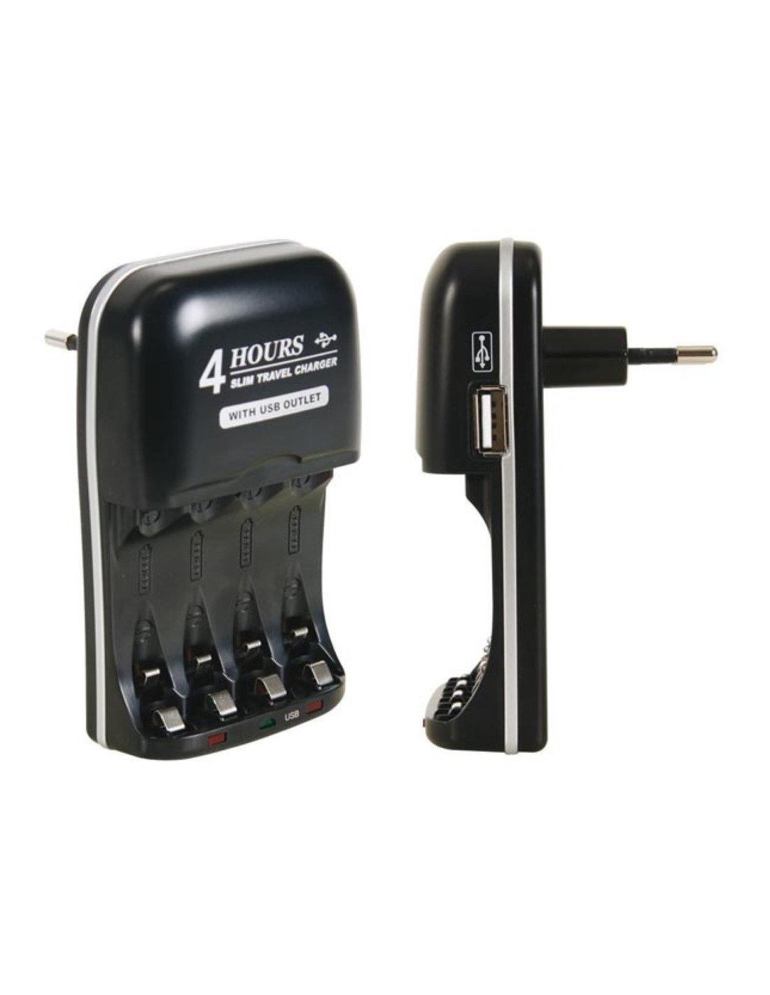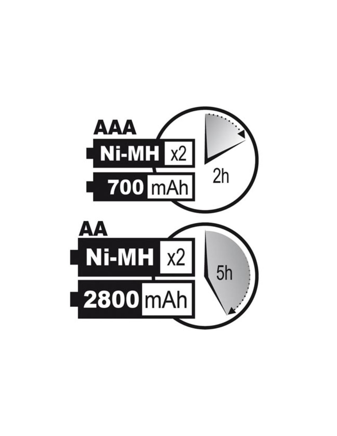 Este cargador rápido combina comodidad y eficacia, cargando sin esfuerzo tanto 2 como 4 pilas NiMH AA o AAA. Con un puerto USB, indicadores LED de estado y funciones de seguridad, es un cargador fiable para usar en casa o fuera de ella.