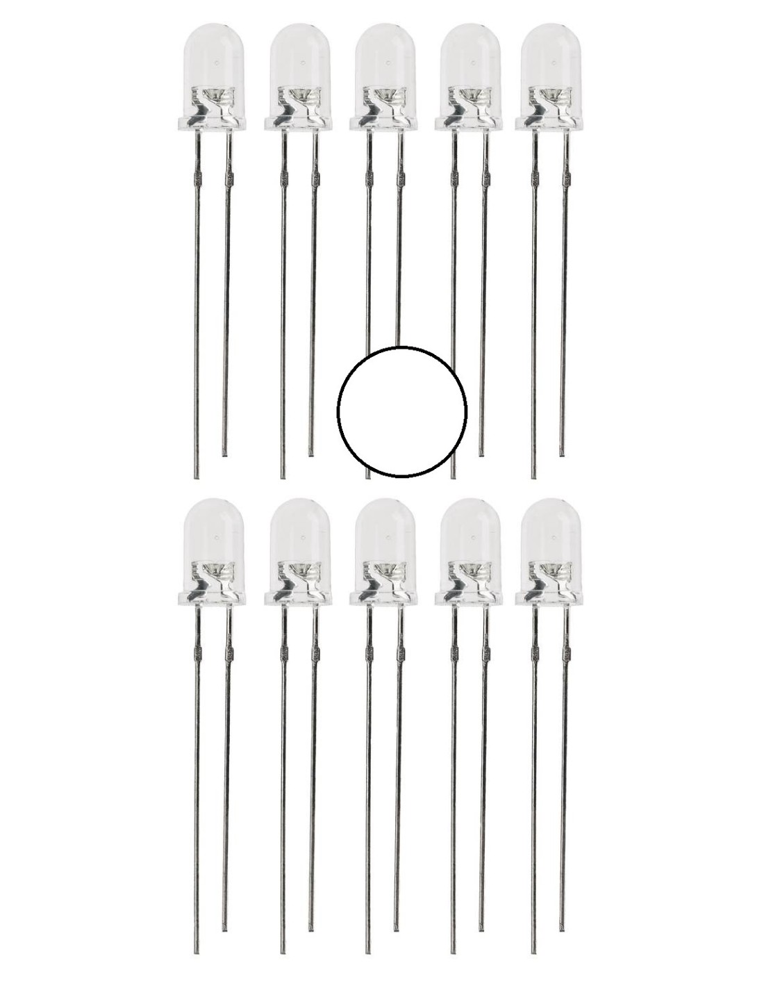 BLISTER DE 10 LEDS BLANCOS ALTO BRILLO 5MM 25CD 3V 20º TRANSPARENTE