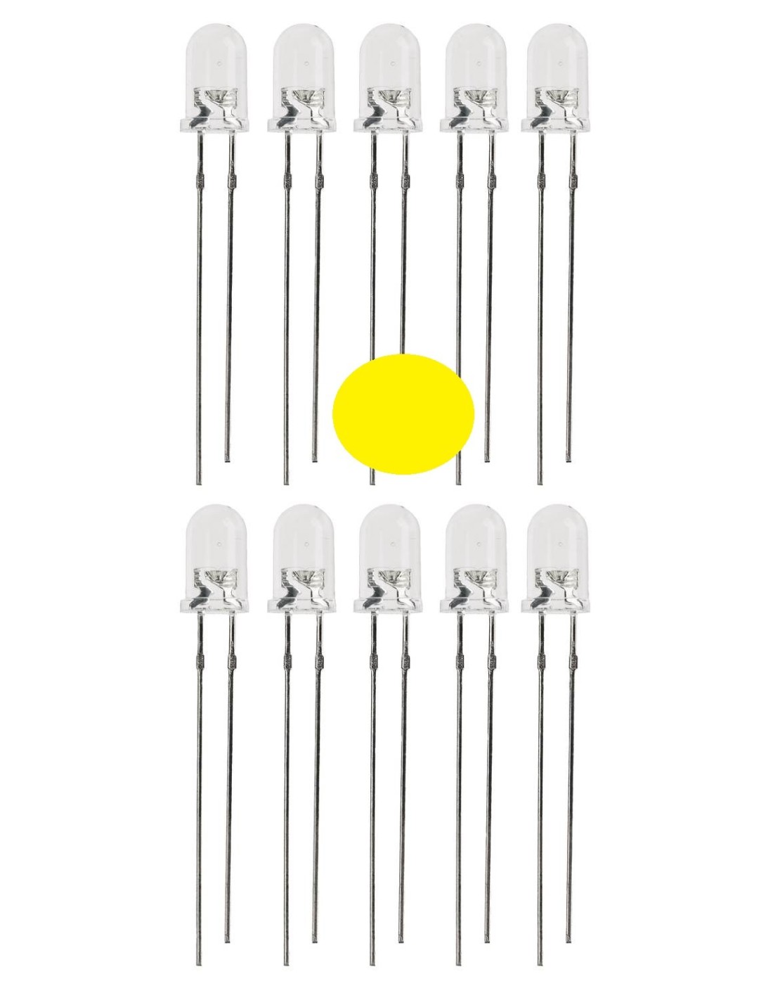 BLISTER DE 10 LEDS AMARILLOS ALTO BRILLO 5MM 15CD 2.5V TRANSPARENTE