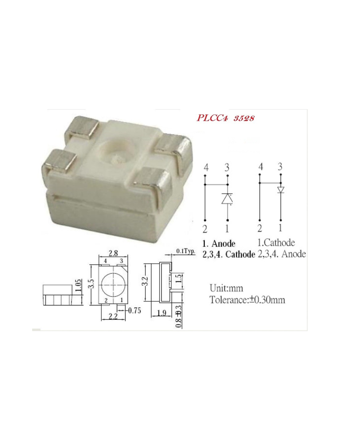 LED RGB SMD PLCC4 3,5x2,8x1,9mm 2.2V 3.3V 3.2V 20mA